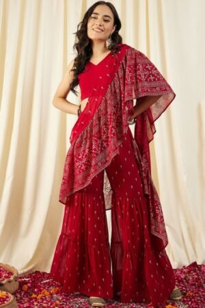 Sleeveless Crop Top With Sharara & Frill Dupatta Ethnic Co-Ords Set