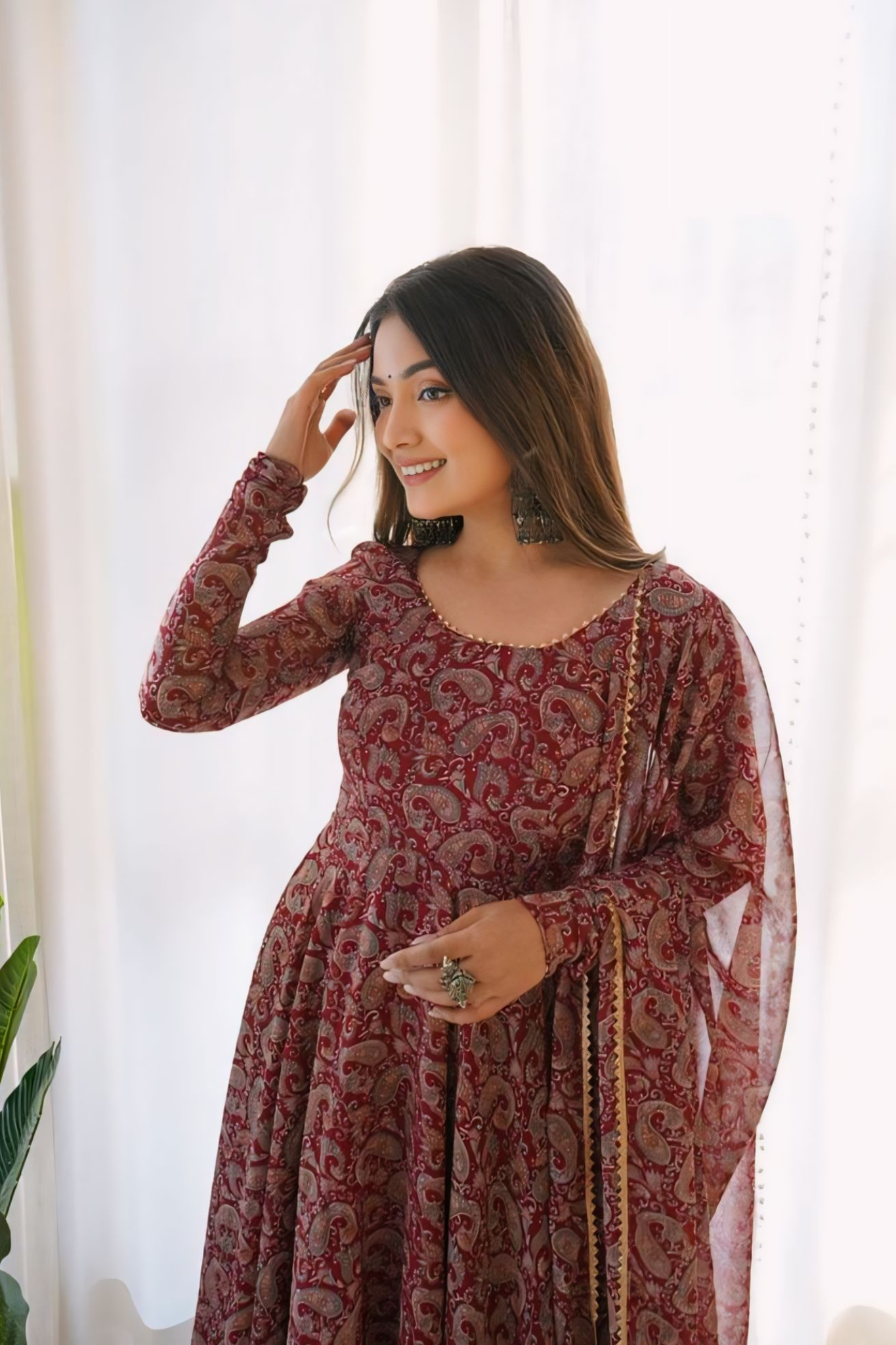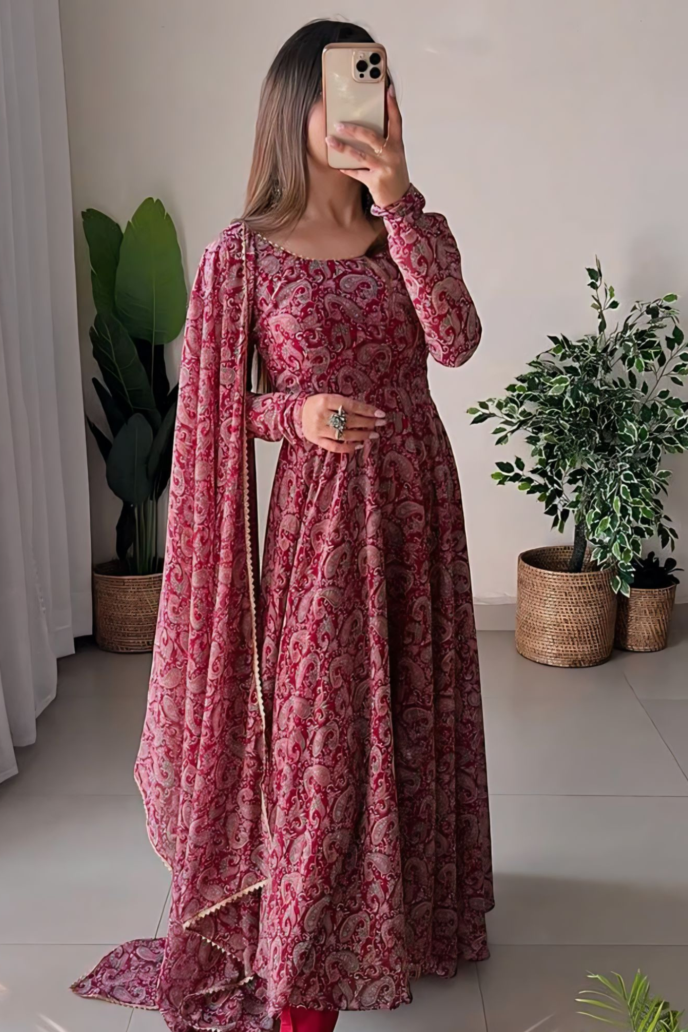 BEAUTIFUL PAISLEY ANARKALI PRINT GOWN WITH DUPATTA