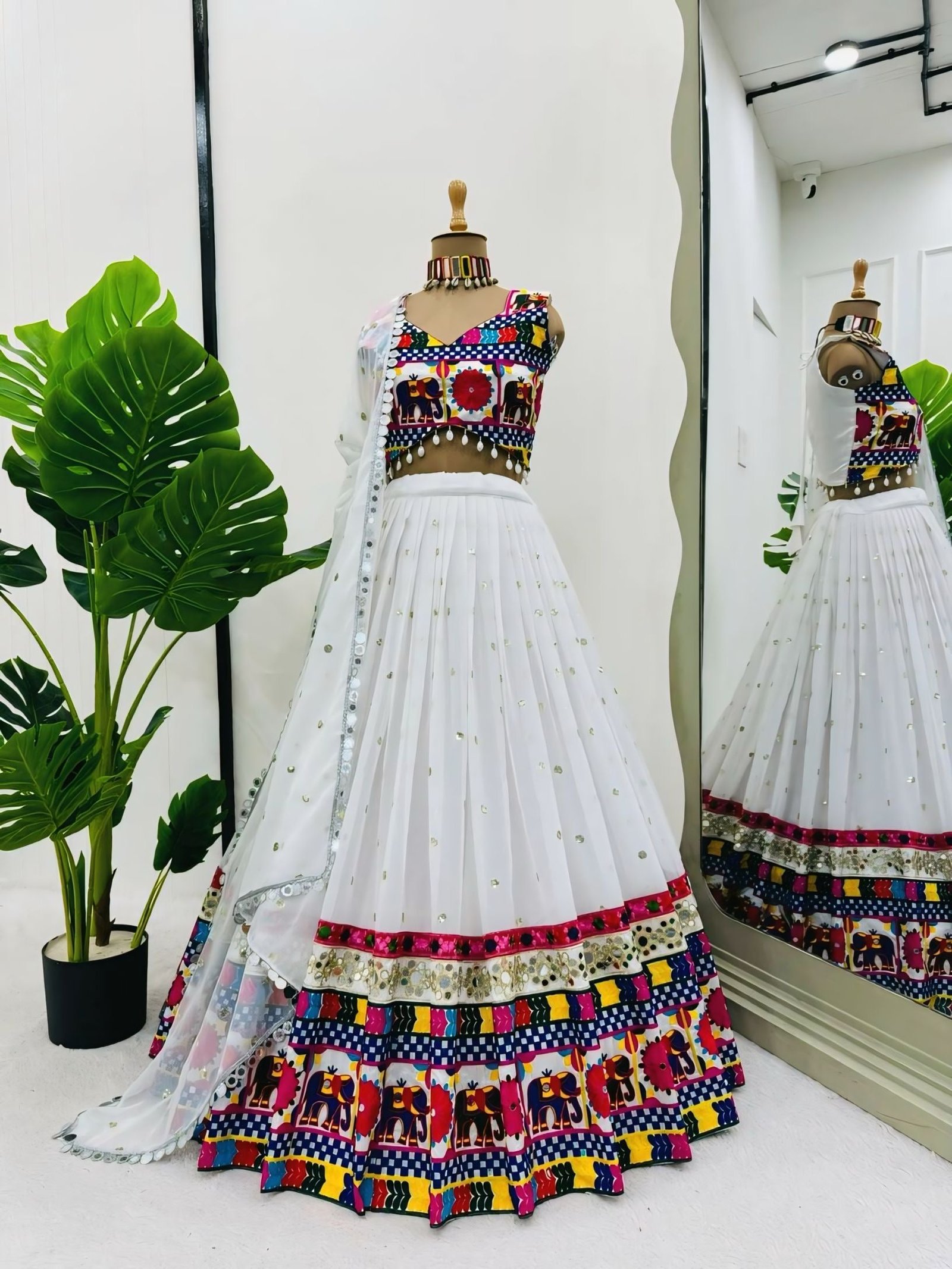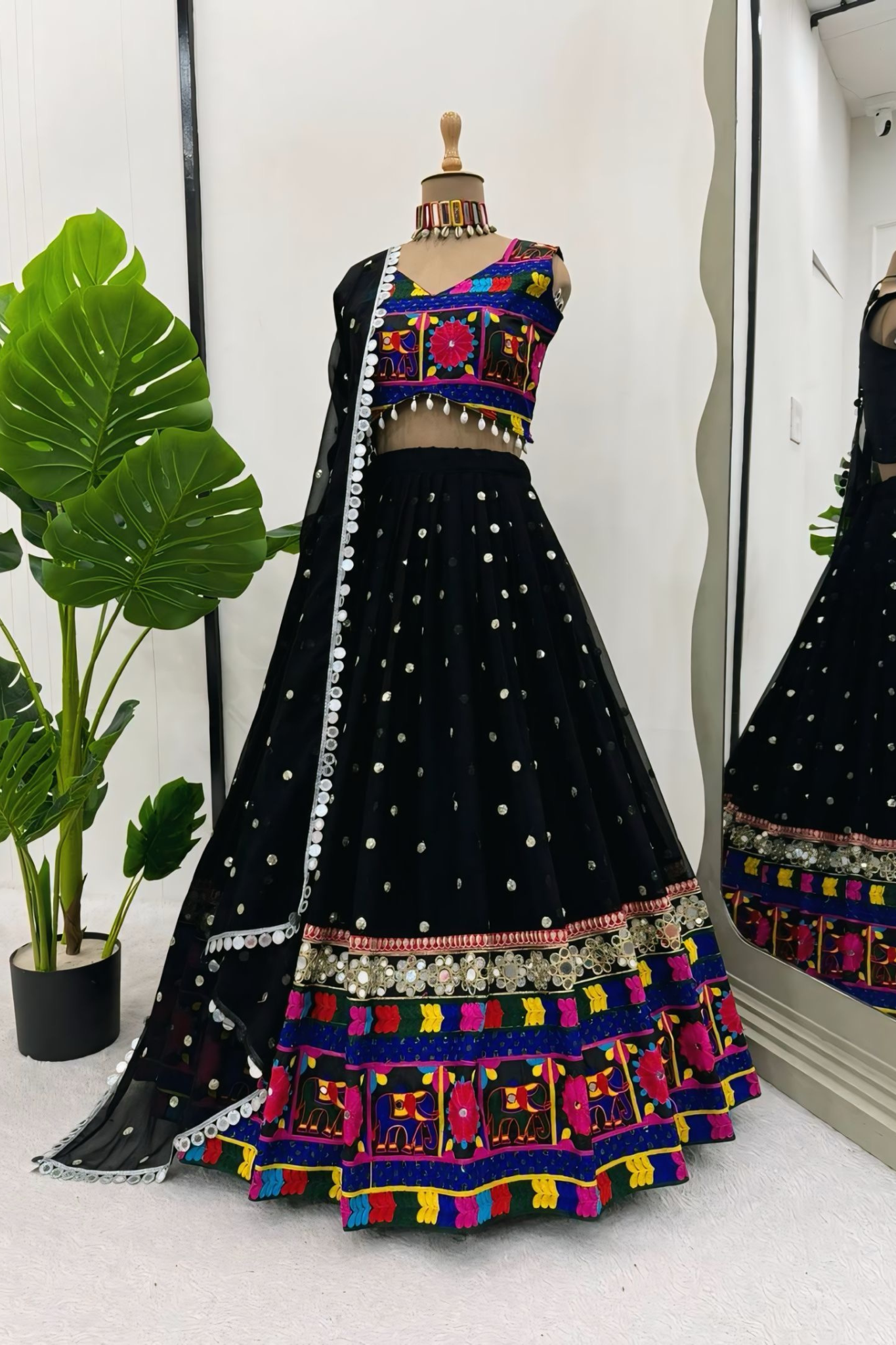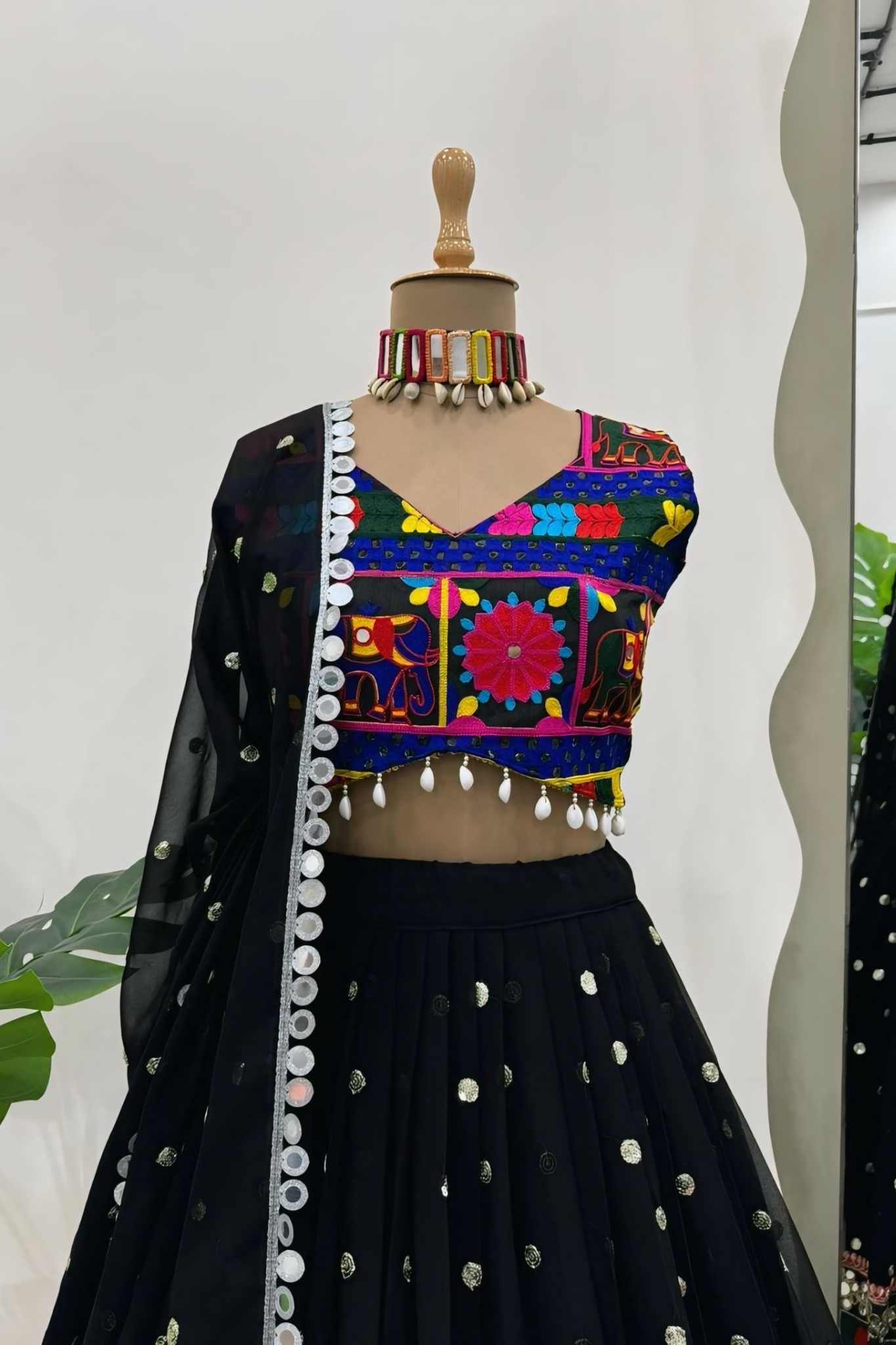 + Free ShippingEmbrace the vibrant colors and intricate details of our COLORFUL EMBROIDERED BLOUSE. Made with Foux gorgette fabric for a comfortable fit, this blouse features delicate sequin and mirror work, as well as charming floral and animal motifs. The semi-stitched lehenga, paired with a cancan and canvas, adds volume and flow to your look. The choli, crafted with Foux gorgette and adorned with kodi lace broder, is also included in this package. Complete the outfit with the beautiful dupata, also featuring intricate sequin and lace work. Available in size up to 44, this outfit is sure to make you stand out at any event.