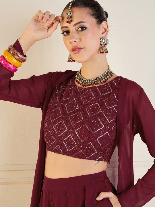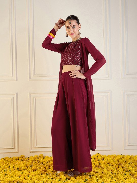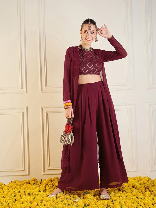 Embroidered Top, Shrug & Palazzos Co-Ords
