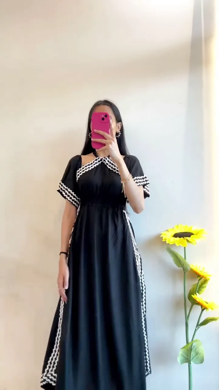 • Black Maxi Dress with Zigzag Trim Accents ? Features decorative zigzag trims that add a contemporary and chic aesthetic, perfect for casual outings or day-to-day wear.