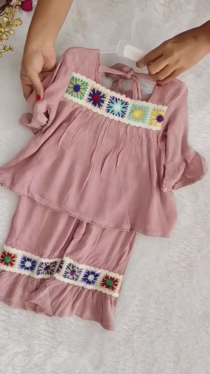 + Free ShippingElevate your little one’s wardrobe with this enchanting 2-piece boutique outfit. Designed with a blend of vintage bohemian charm and modern comfort, this set is perfect for festive occasions, family gatherings, or stylish everyday wear. Crafted from premium breathable crinkle fabric, it ensures your child stays cool and comfortable while looking effortlessly stylish.