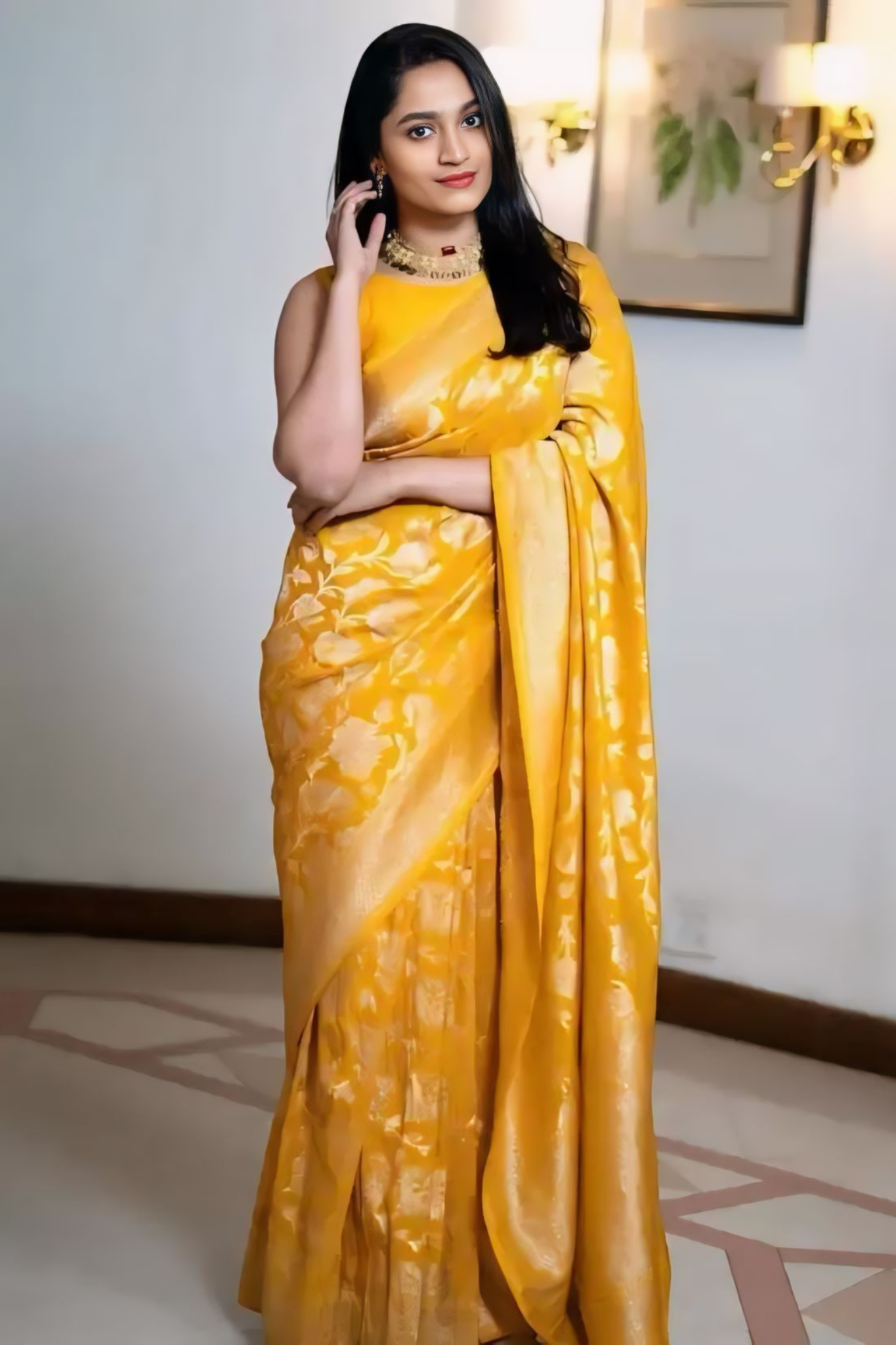 INTRICATELY WOVEN PURE SILK BANARASI YELLOW SAREE