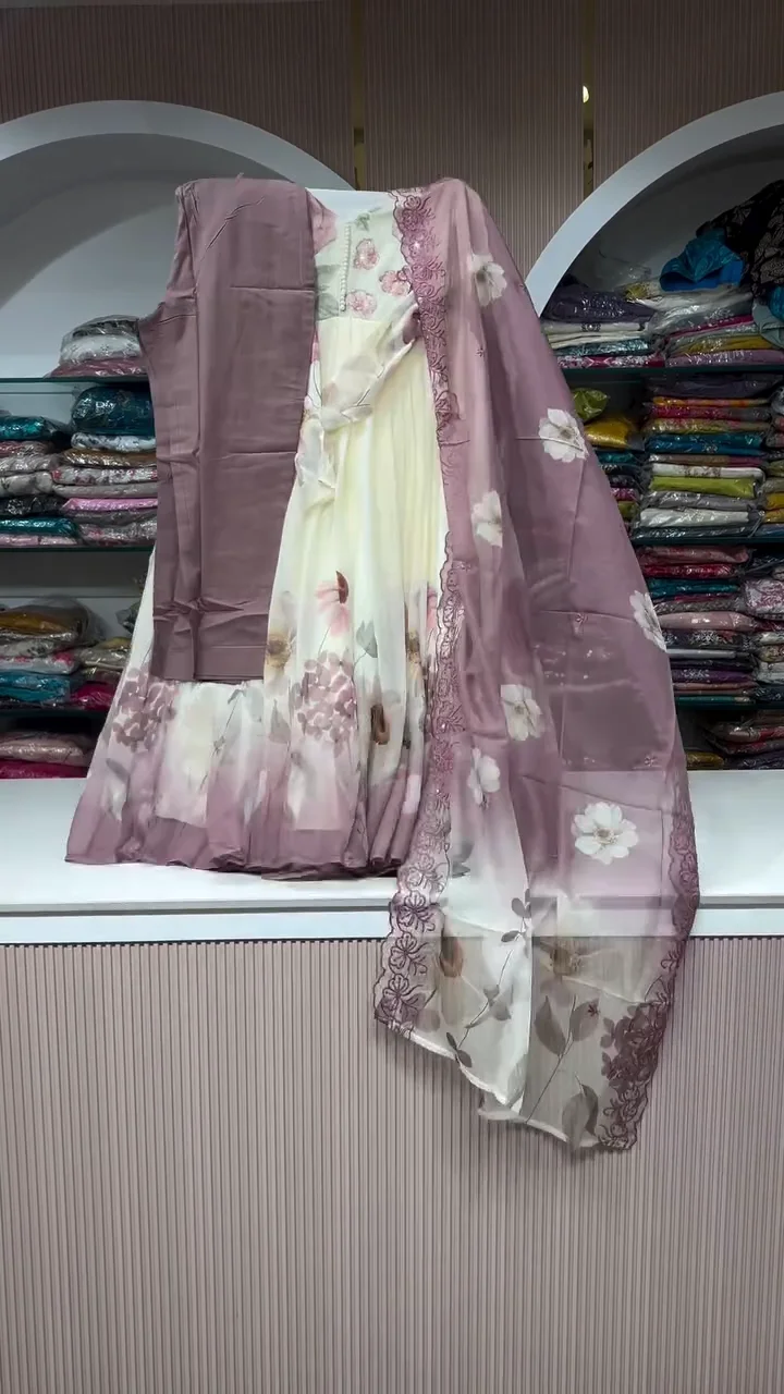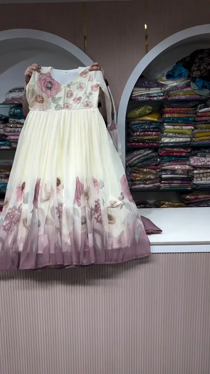 Features a beautiful flared Anarkali design for a royal appearance