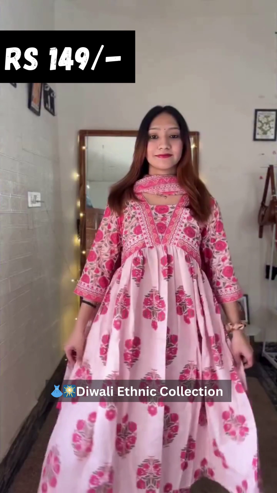 Elegant Anarkali Set ? Beautiful floral print long kurta paired with a matching dupatta.