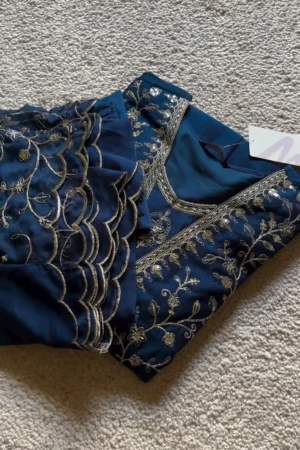 Women’s Ethnic Wear Collection: Designer Wine Georgette Lehenga Choli with Embroidered Shrug & Belt, Sky Blue Floral Embroidered Kurta Set