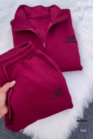 Cozy Fleece Zip-Up Lounge Set – Full Zip Hoodie with Drawstring Collar & Matching Wide-Leg Pants | Soft, Warm & Relaxed Fit Winter Wear | Available in Beige Color