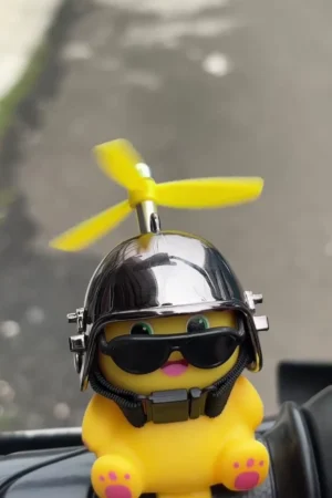 Universal Cute Yellow Propeller Duckling Handlebar Accessory – Wind-Powered Spinning Propeller, Chrome Helmet with Sunglasses, Vibration-Activated LED Glow, and Easy-Mount Rubber Strap for Motorcycles, Bicycles, Scooters, and Car Dashboards